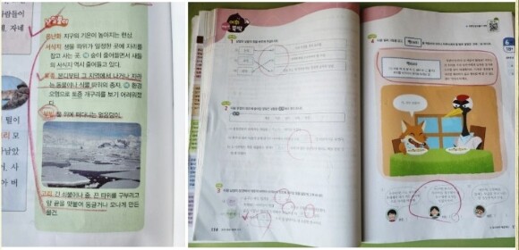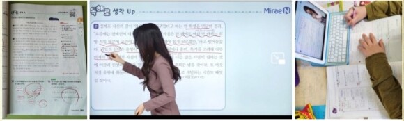 국어 교과서에 나오는 지문중에 중요 문장을 뽑아서 지문 학습을 하고 교과서 문제, 중요한 부분, 서술형 문제등 다양한 문제를 스스로 학습을 하면서 어려운 문제는 이끌이가 주는 힌트에서 답을 찾아 보기도 하죠~