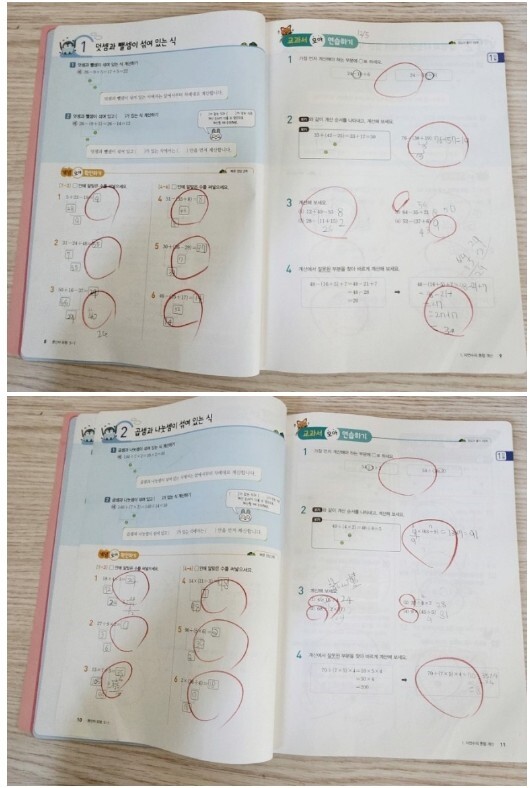 덧셈과 뺄셈이 섞여 있는 식 , 곱셈과 나눗셈이 섞여 있는 식 의 단원으로 나뉘어져 교과서 개념을 이해하고 원리를 이해 한 후 문제 풀이를 할 수 있도록 구성되어 개념 모아 확인하기와, 교과서 와 익힘책 문제를 풀면서 기본기를 다질 수 있는 문제들을 학습 해요.