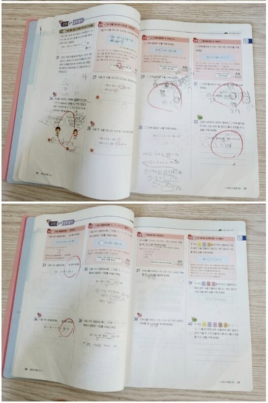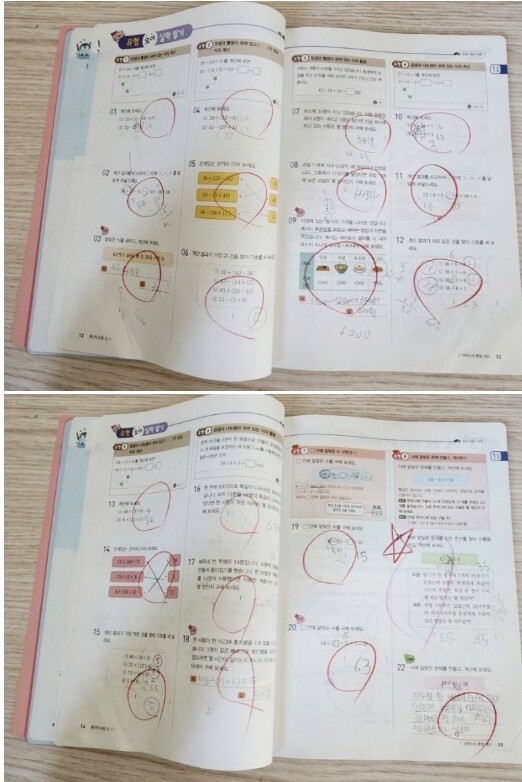 아이가 틀린게 너무 많으니까 채점은 해주지 마라며 깨끗히 지워 달라 부탁 하더라고요..