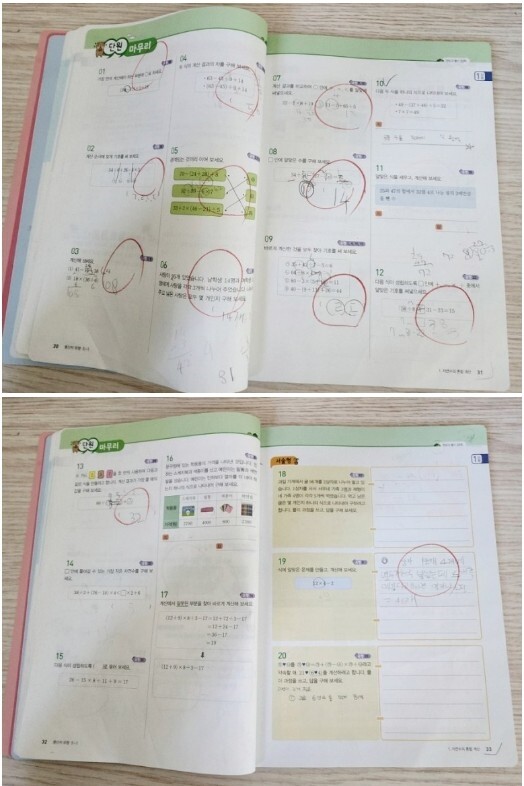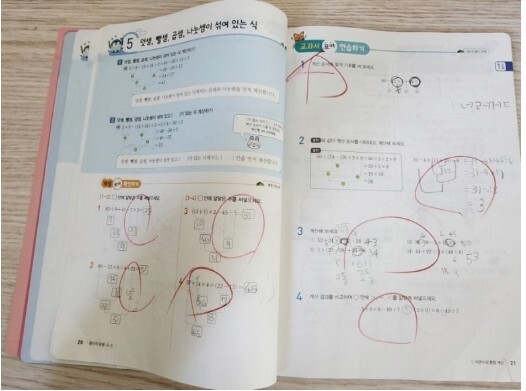 역시나... 덧셈, 뺄셈, 곱셈, 나눗셈이 섞여 있는 식을 학습 하는데서 오답이 수두룩 하게 나오더라고요