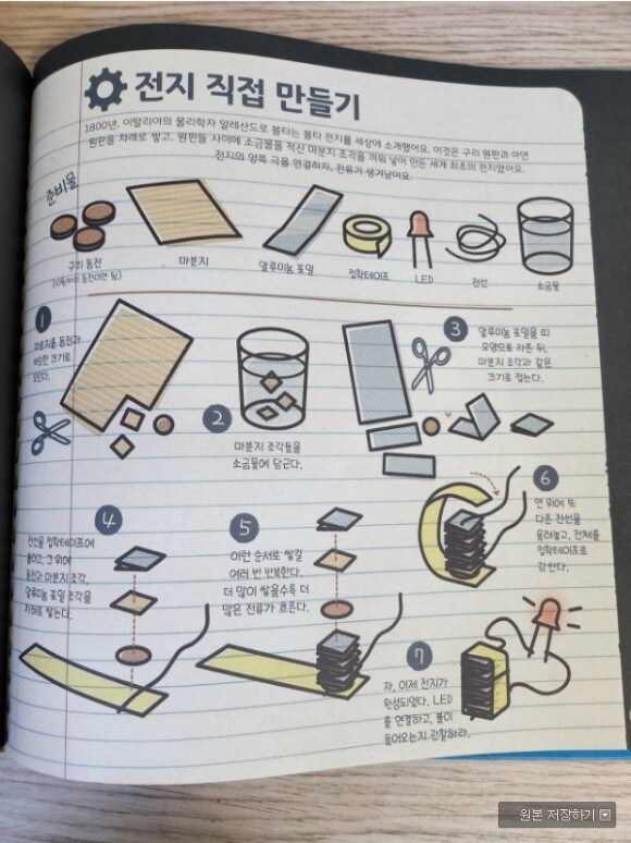 호기심 많은 아이가 집에 있는 10원짜리 동전부터 모든 재료를 모아 보다가 전선과 마분지가 없어서 아쉬워 했죠 ㅎㅎ