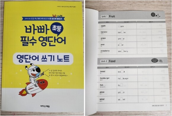 이번에 새롭게 편찬된 책은 교육부 권장 초등 학년별 어휘 초등 필수 영단어 800개를 한 권으로