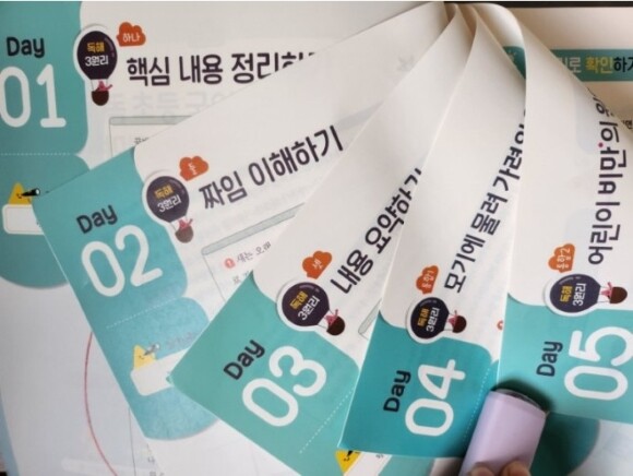 1,2,3day 에서 핵심내용 정리하기 - 짜임이해하기 - 내용요약하기 3가지 원리 학습을 하고