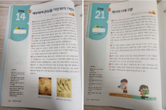 2~6주차 까지는 DAY마다 다양한 이야기들로 (인문, 사회, 과학, 예체능, 언어, 융합)