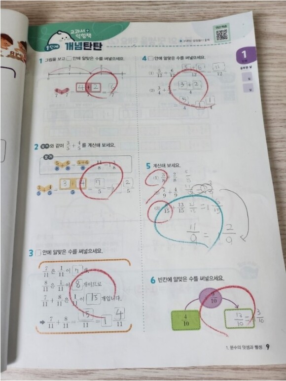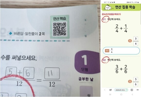 간단한 분수 연산 학습이지만 학습의 속도를 붙여 주는 역할을 하더라고요