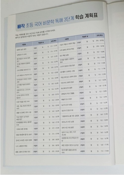 아이가 문학이 쉽다고 일주일 학습을 짤때