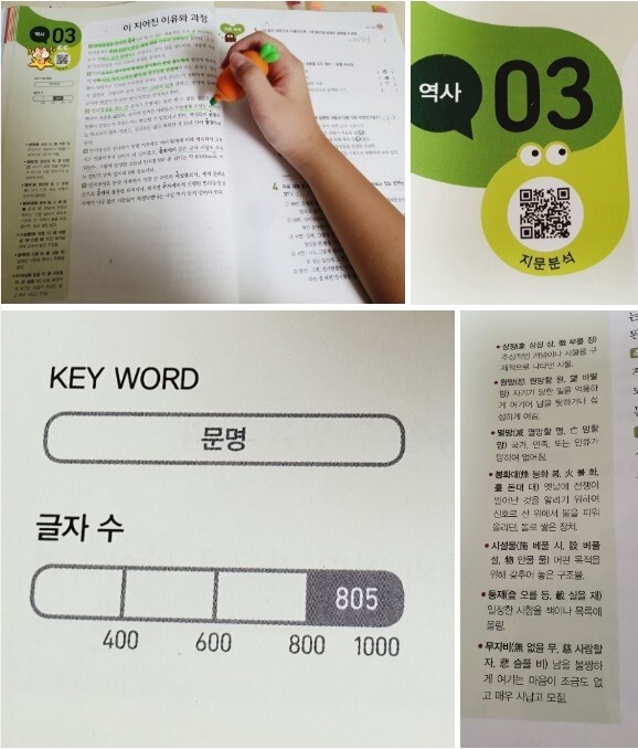 지문 분석 QR과, 키워드, 글자수 어휘들이 정리 되어있어요