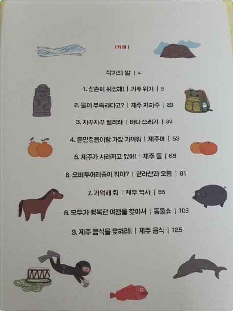 기후위기, 지하수, 바다 쓰레기, 제주어, 제주 돌, 한라산과 오름, 제주 역사, 동물쇼, 제주 음식, 총 9가지의 키워드로 제주도의 환경 문제 뿐만 아니라 문화와 역사까지 두루 살펴볼 수 있고요.