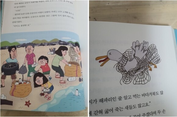 다른 나라에서 밀려온 바다 쓰레기들까지 더해져서 많이 아파하고 있다네요