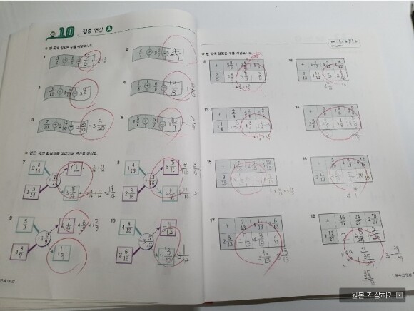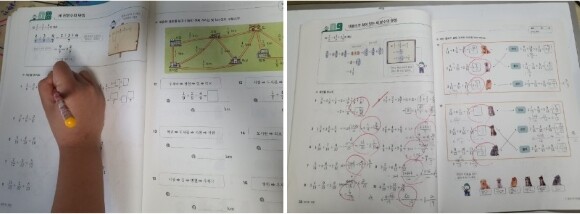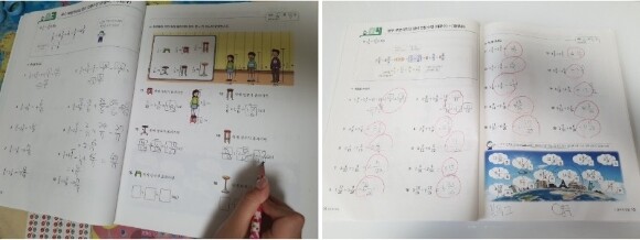 분수문제를 접하고 보더니 무조건 어렵다고 투덜 됐는데 풀다 보니 쉽다고 하면서 금방 풀더라고요^^