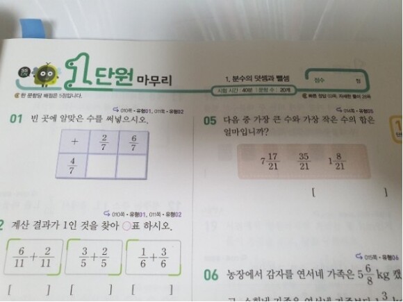 소수의 기본 개념을 공부하고 와서 1단원 분수의 개념이 조금 더 잘 들어왔나봐요