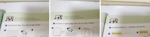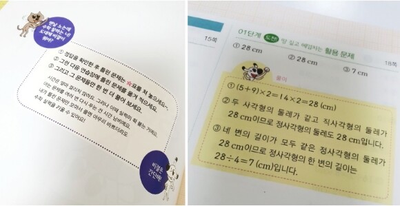 가끔 문제집중에그냥 답만 있고 그럼 아이가 틀리고 풀이방식 물어볼때 정말 난감 하거든요 ㅎㅎㅎ 친절한 답안지 의 풀이 부분이에요. 바쁜 초등학생을 위한 빠른 평면도형은 활용문제 부분에서 답만 나오는게 아니라 빠독이가 친절한 설명을 하고 있죠~저는 답안지에 친절한 설명이 있는게 좋더라고요..