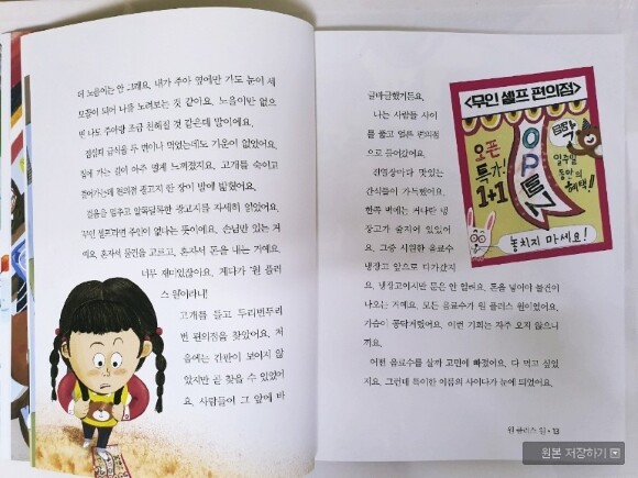 금별이는 고개를 숙이고 걸어 가다가 무인 셀프 편의점 전단지를 발견해요.