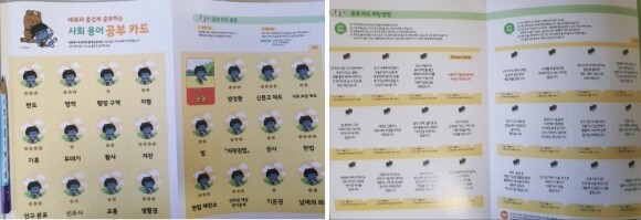 놀이를 하며 사회 용어를 외울 수 있는 1석 2조의 공부 카드에요.