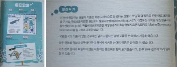 이 책에 등장하는 생물의 이름은 학명(국제적으로 통용되는 생물의 학술적 명칭)을 근거로 국립생물자원과 한반도의 생물 다양성과 국립수산과학원 수산생멸자원정보센터, 국립 해양생물자원관 해양생물자원 통합정보시스템을 참고하여 검토하였다니 믿고 읽을만하죠~^^