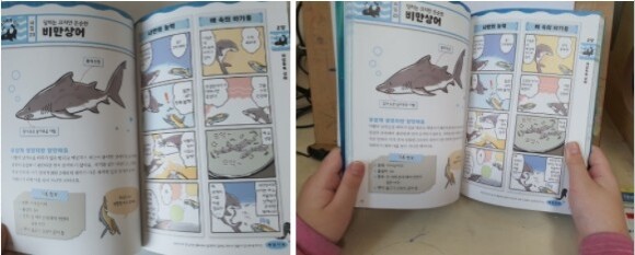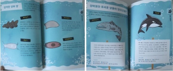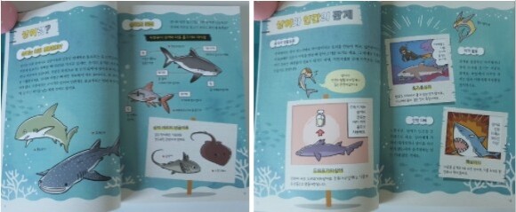 중간중간 나오는 상어 이야기는 상어에 관련된 설명들이 이루어져 있는데요. 상어의 이빨, 상어는 얼마나 빠를까? , 상어의 감각기관, 상어 요리, 역사 속 상어 사건, 상어의 적 등등 유익한 이야기들이 많이 담겨 있어요.