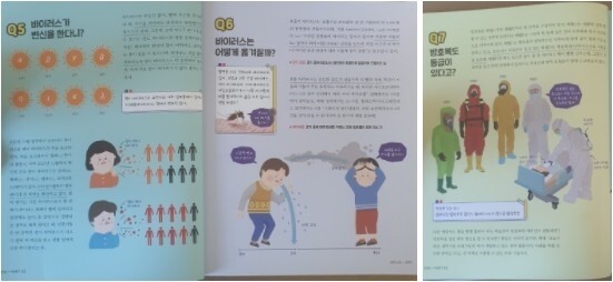 아이가 읽고 또 읽고 했던 부분이 많은 부분이 있지만 특히 바이러스의 변신 부분과 방호복 등급 부분이었어요. 예전부터 바이러스가 왜 자꾸 이름이 바뀌는지 궁금해하던 부분이라서 이 부분이 너무 흥미로웠나 봐요.