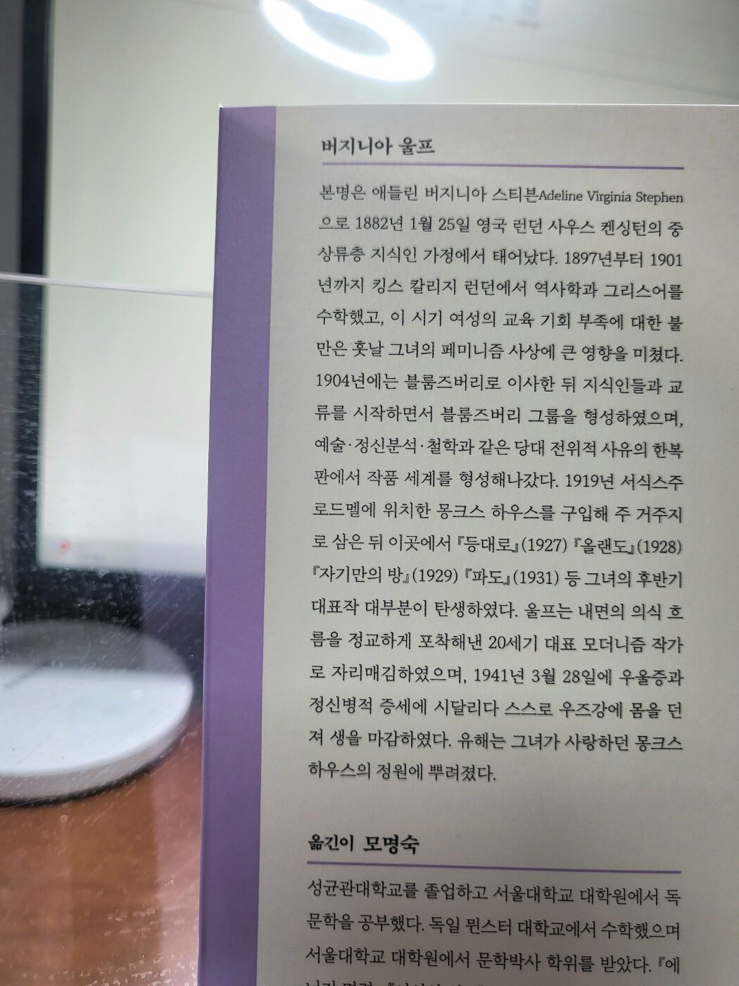 울프는 내면의 의식 흐름을 정교하게 포착해낸 모더니즘 작가라고 하는데 글을 읽다 보면 나른할 정도로 고요하고 마음을 달래주어 긴장이 풀어진다.