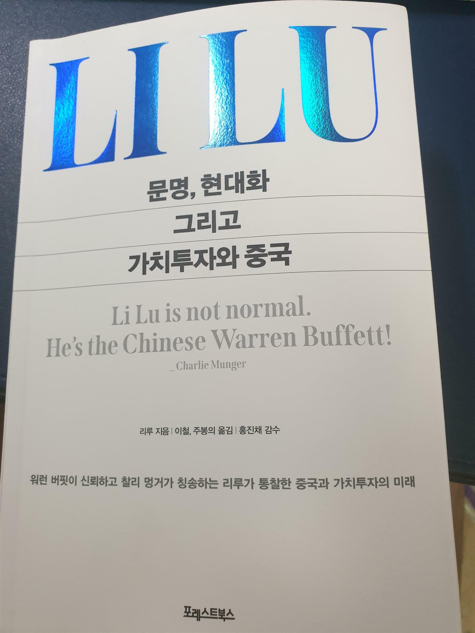 생전 찰리 멍거는 언론과의 인터뷰에서 "자신의 자산을 다른 투자자에게 맡겨야 될 상황이 온다면 전 세계를 통틀어 단 두명의 투자자에게 맡길 수 있다"라고 하기도 했다는데 이들 중 한 명은 당연히 워런 버핏이고 다른 한 명이 바로 이 책의 저자 리루입니다. 리루는 중국인이기는 하지만 20대까지만 중국에서 살았고 1989년 천안문 사태 이후 미국으로 건너가 중국에서보다 훨씬 더 많은 시간을 미국에서 지낸 금융인으로 히말라야 캐피탈이라는 기업의 대표입니다.