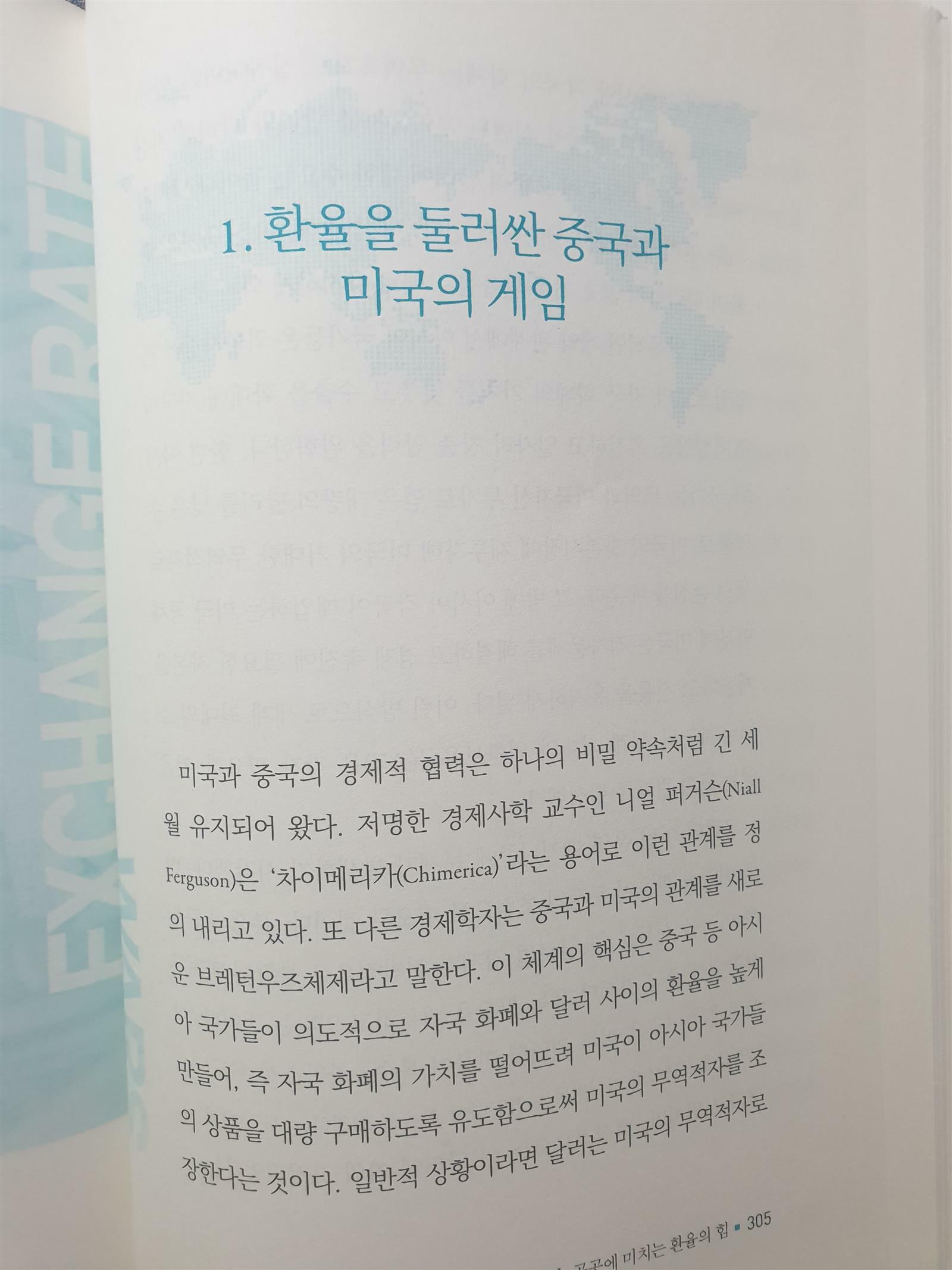 후반부에서는 환율과 관계된 현대경제의 이슈와 앞으로의 흐름이 어떻게 될 지 많은 통찰을 전해주려는 저자의 의도가 엿보인다. 중국와 미국의 환율을 둘러싼 게임, 중국과의 무역에서 발생하는 엄청난 무역적자를 감소시키고자 위안화를 절상하고자 하는 미국내의 움직임 등을 소개하고 있다. 또한 세계 화폐제도는 어떻게 가야 바람직한 방향으로 가는 것인지 금본위제로의 회귀, 세계의 화폐를 통일하는 것 등 여러 관점에서 고민해 볼 이슈도 던지고 있다.