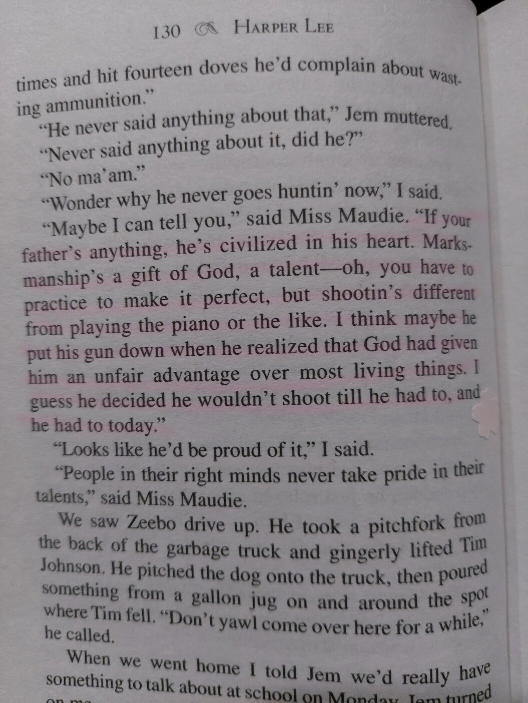 chapter 10.*He sat in thr livingroom and read.*but remember it is a sin to kill a mockingbird.*Mockingbird don‘t do one thing but make music for us to enjoy.*There is life in him yet