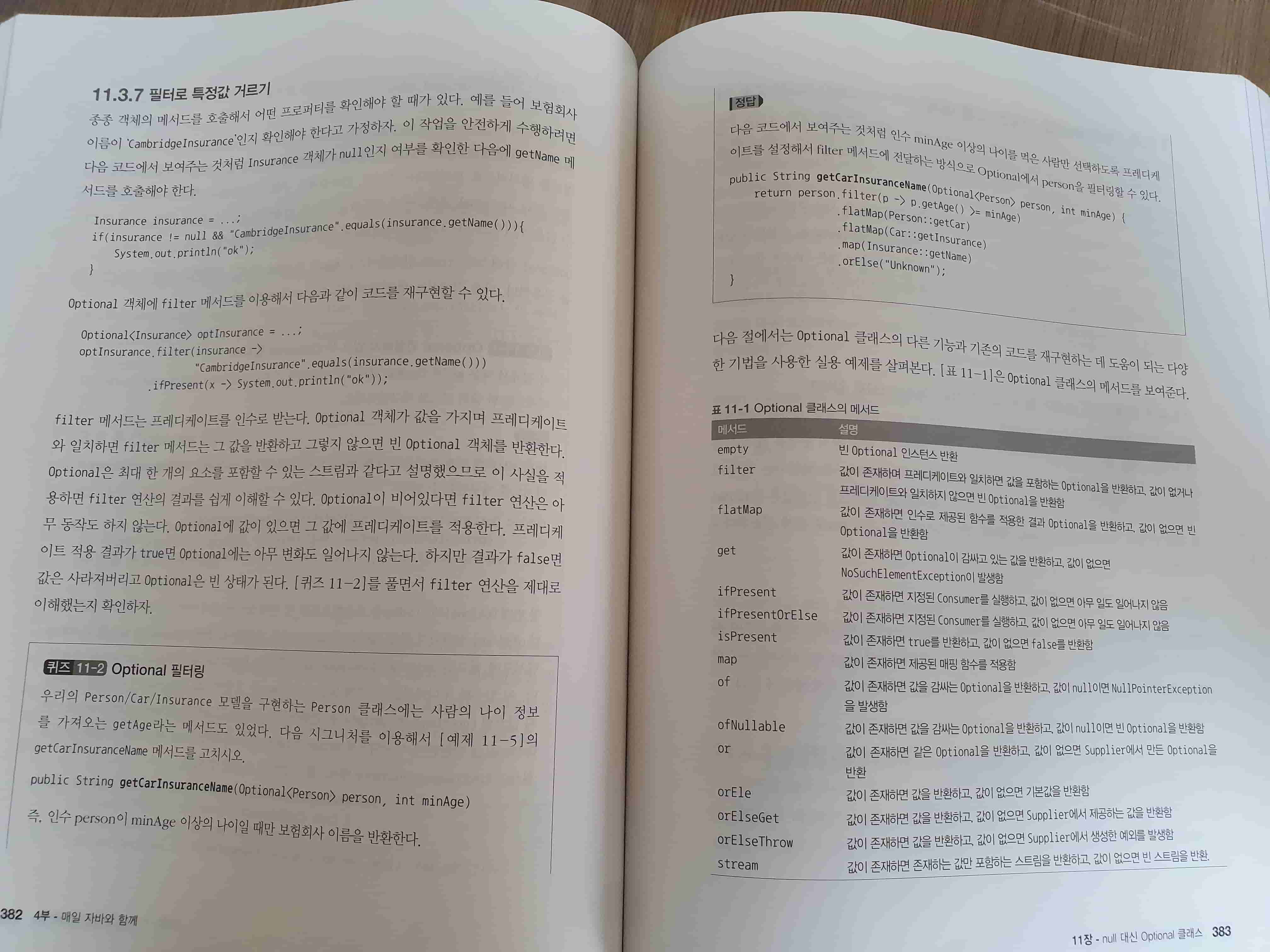 물론, 자바8이 나온지 벌써 몇년이 지났기 때문에 아마 이미 사용하고 있는 사람도 많을 것 같다. 작성자의 경우도 Optional 이라던지, Stream API 등은 이미 실무에서 계속해서 사용하고 있던 것들이다. 하지만 항상 사용하던 것들만 사용하게 되고, 그냥 쓰면 좋다니까 별 생각 없이 사용해왔었던 것 같다. 그러다 보니, 이 책을 읽으니 이제는 최신 문법이 어떤 구조로 되어 있고, 어떻게 사용해야 잘 사용하는 방법인지 대충 감을 잡을 수 있었던 것 같다.