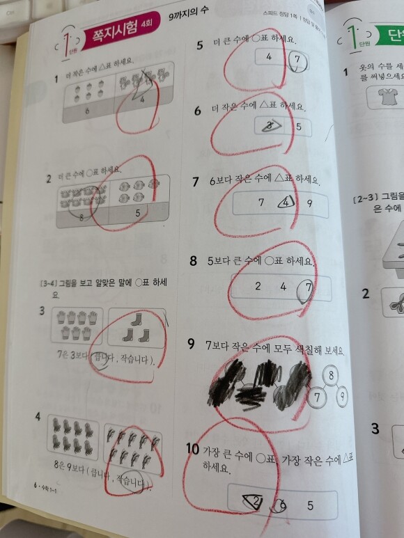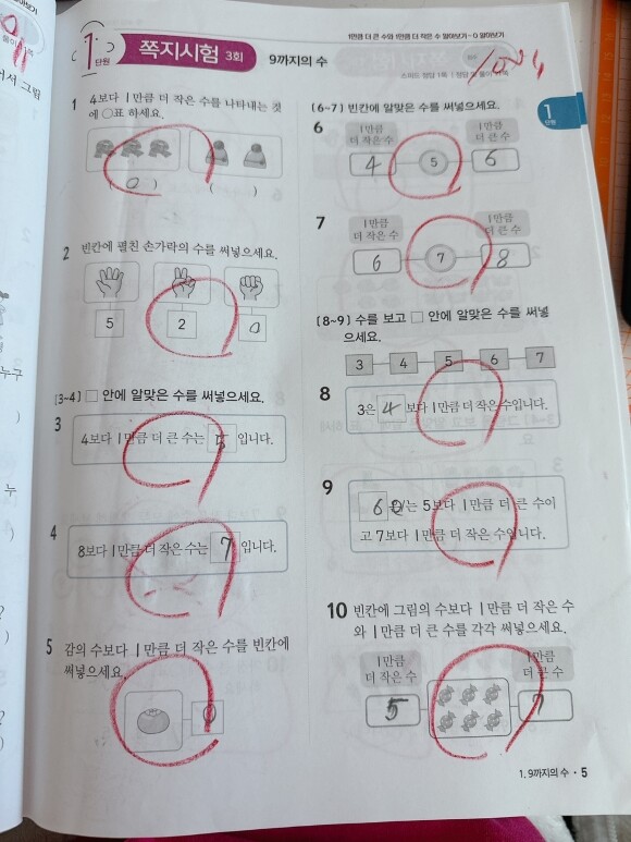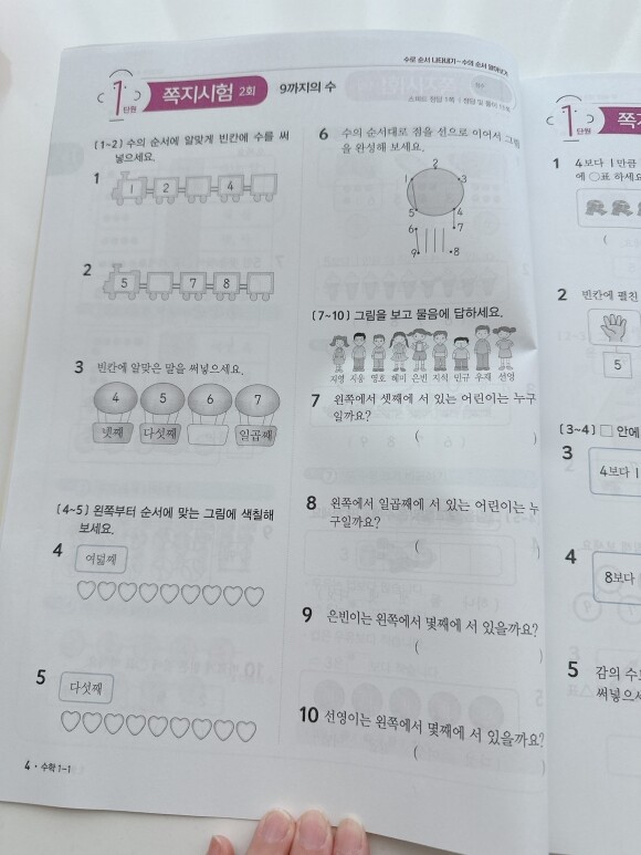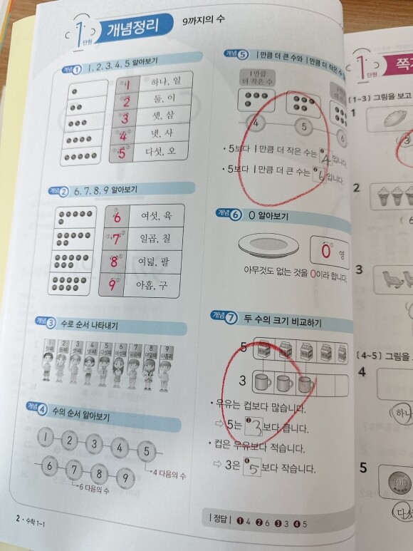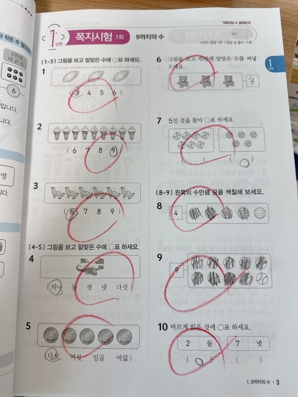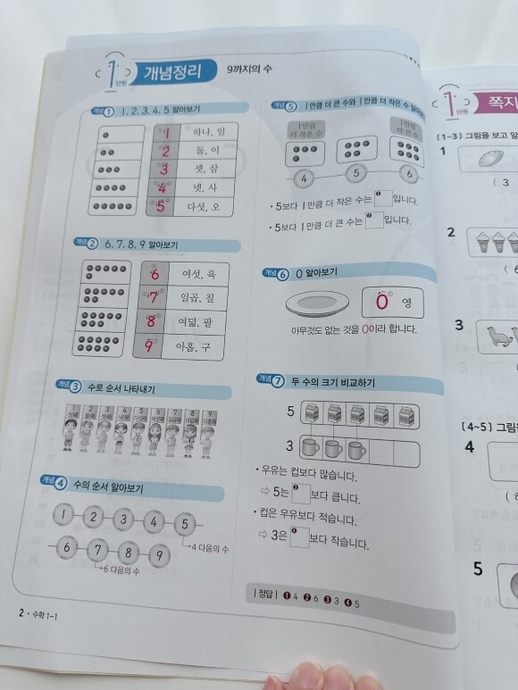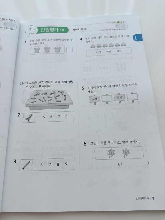 1-9까지 읽는 연습과 쓰는 연습을로 나뉘어져 있고
