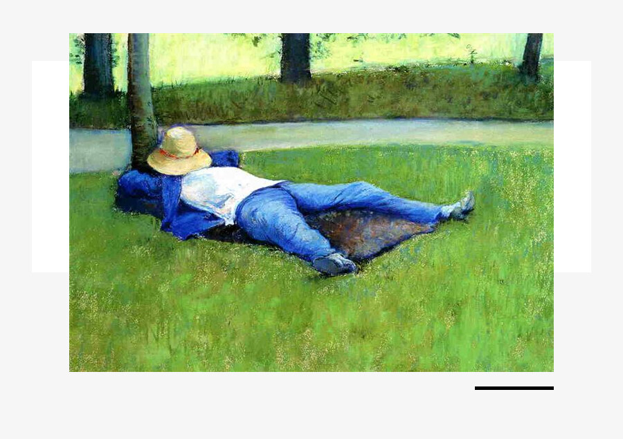 사람마다 스트레스를 푸는 방법이 모두 다 같지 않겠지만, 나의 경우 컨디션이 좋지 않은 경우 우선 잠을 자는 습관이 있다. 아마도 이 작품이 눈에 들어왔던 이유가, 풀밭에 편안하게 잠든 저 모습이 지금 내가 가장 갈망하는 편안한 잠을 담고 있기 때문일것이다.