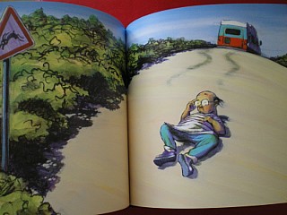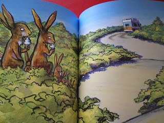 아빠 토끼가 제일 먼저 도로를 가로질러 건너면서 트럭 아저씨를 놀라게 하네요...