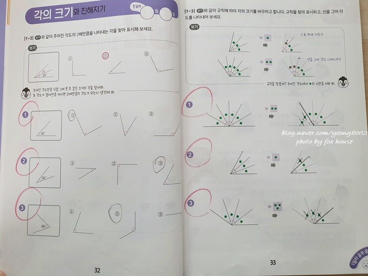 물론 우리 남자3호는 처음 각도를 잴 때 틀려서 줄줄히 오답이지만.
