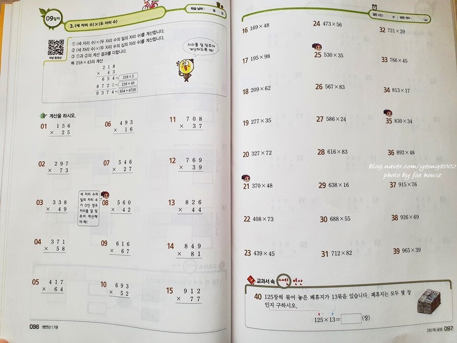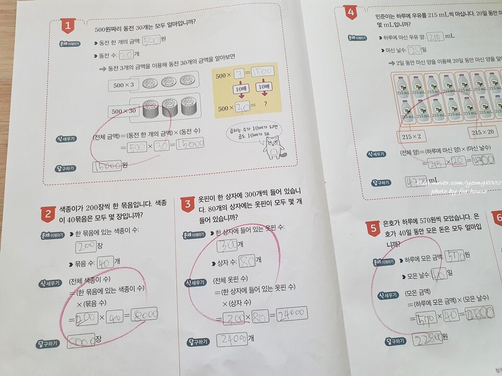 4학년이 되었다고 곱셈도 수가 확 커졌구나.