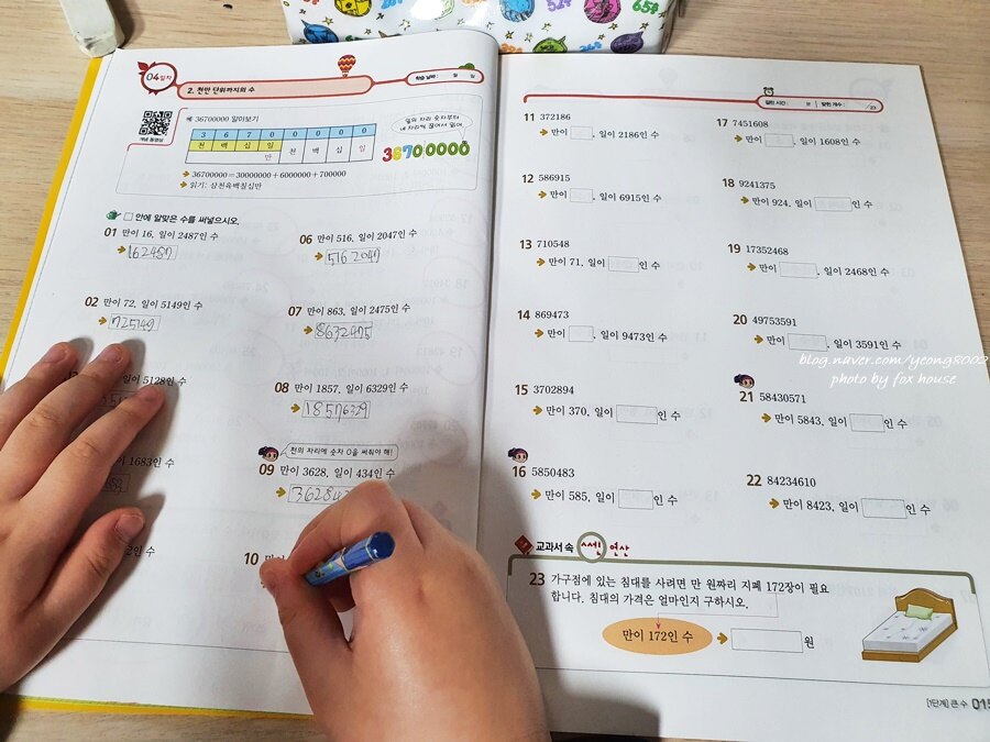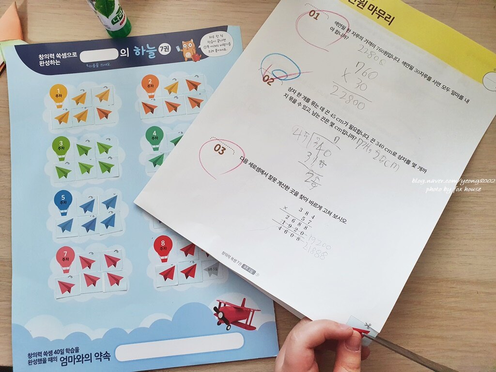 하루 한장 창의력 쏙셈 그 열공의 흔적을 남기며 완북에 성공했다.