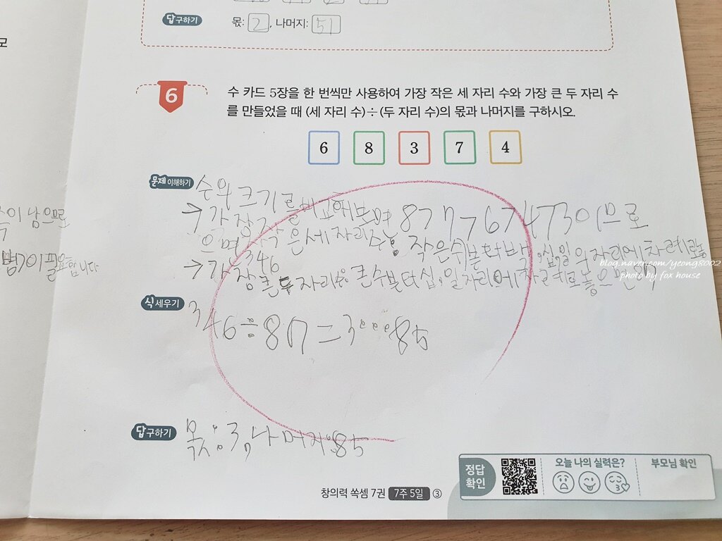 하루 한장 창의력 쏙셈 덕에 이제 서술형 문제도