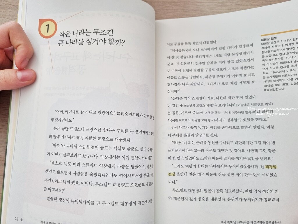 어떻게 보면 다소 어려울 수 있는 그 당시 정세를 대화형식으로 풀어 설명하니