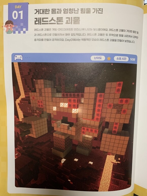 우선 마인크래프트를 게임을 직접 해보면서 공부를 좀 해야할 것 같습니다. 그리고 나서 건축물을 이 책을 따라하면서 하다보면 공간개념은 확실히 생길 것 같아요. 약간 레고블럭을 하는 기분도 들고, 내가 레고블럭을 만드는 제작자가 된 것 같은 착각도 들었습니다. 초등학생부터 이렇게 게임의 건축물을 실제로 만들어보면 공간적인 개념, 코딩을 통해 배울 수 있는 순서, 알고리즘 등을 이해하는 데 도움이 될 것 같아요.
