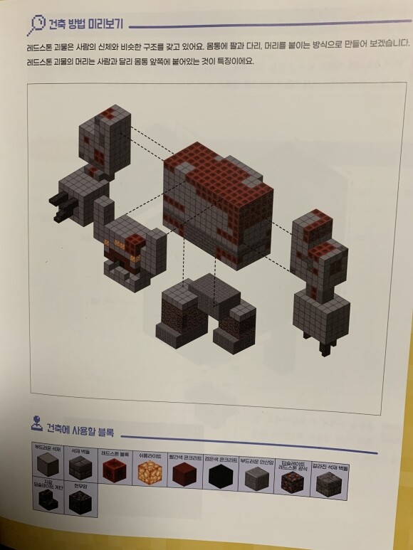 마인크래프트 월드에서 블록으로 무언가를 만드는 '건축' 은 누가 알려주지 않아도 자연스럽게 즐기면서 익힐 수 있다고 소개하고 있어요. 건축에 사용할 수 있는 아이템이 700여개나 되고 그것으로 표현할 수 있는 세상은 정말 무궁무진합니다. 야생에서 살아남기 위해 나무 벽을 세우는 것부터 실제 세상과 같은 크기의 거대한 성을 만드는 것까지 마인크래프트 에서 만든 결과물은 건축가나 예술가의 작품과 비슷한 수준을 보여준다고 하네요.저자분들의 열성이 녹아져있는 내용을 이제 훑어보겠습니다.