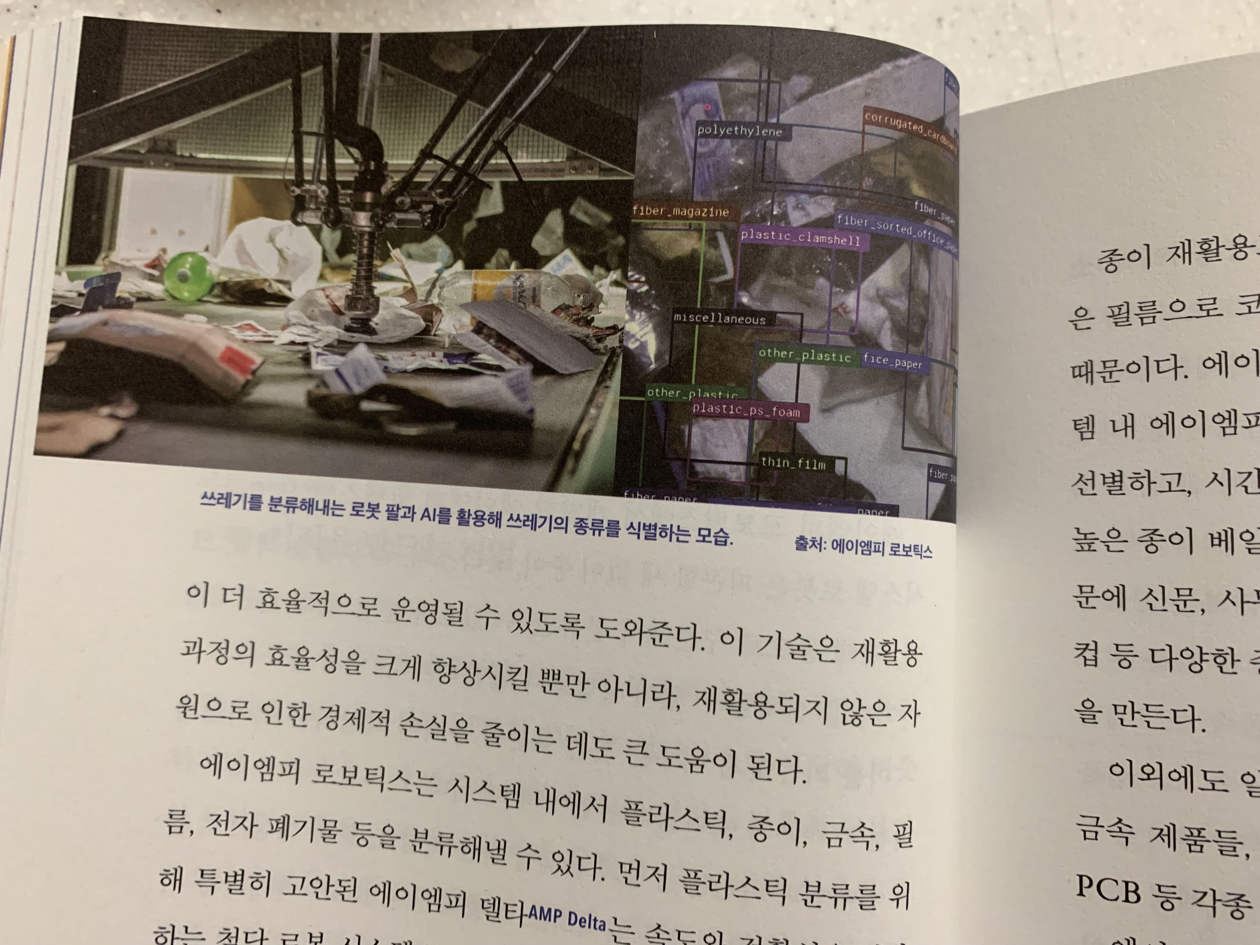 지구의 온난화로 인해 환경지킴이 운동이 세계에서 펼쳐지고 있다. 탈탄소, 저탄소사업이 대기업, 중소기업, 개인에게까지 대단한 숙제가 되고 있는 현실이다. 쓰레기를 어떻게 분리 활용하여 환경을 되살릴 것인가. 지구의 종말을 어떻게 하면 조금이라도 늦출까에 촉각을 곤두세우는 시기이다. LA에서 ‘콘크리트.ai’라는 회사는 콘크리트의 자재와 제조, 생산에 있어 탄소발생율을 줄이는 방법을 AI를 통해 고안하고, 실리콘밸리 “에이엠피 로보틱스“ 에서는 AI 를 활용한 쓰레기 분리작업이 진행되고 있었다. 플라스틱이나 유리, 종이, 캔 등등을 정밀 분류하고, 음식 포장지같이 얇은 필름으로 코팅된 종이를 재활용하는데 있어, 시스템 내 ‘AMP VAC’ 이라는 장비를 통해 분당 최대 120개를 정밀 선별하고, 시간당 0.2t의 속도로 종이에서 필름을 제거한 뒤 순도높은 종이 베일을 생산한다.