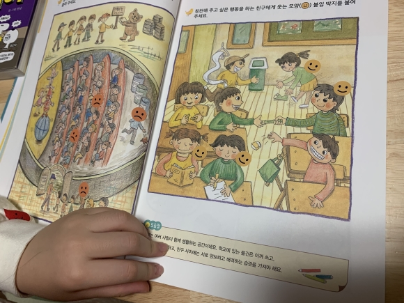 각각의 상황에 만화로 아이들이 빠져들 수 밖에 없게 내용의 흐름이 진행되요~. 그리고 긴 설명보다는 상황에 따른 대화가 진행되면서 자연스럽게 올바른 단어를 사용할 수 있게 해줘서 너무 좋은 것 같아요. 의식하지 못하는 사이에 내 입에 이미 익혀버려지는 자연스러운 학습법이에요.