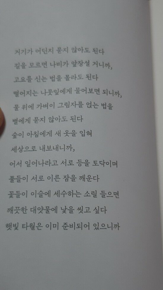 일찍부터 나는 봄날같이 따뜻한 시를 쓰려 했습니다. 냇물을 거너온 실바람 같은 시를 쓰려했습니다. 아무도 보는 사람 없어도 제 신명으로 붉게 피었다 지는 풀꽃 같은 시를 쓰려 했습니다. 길가에 흩어진 바지랑대 끝에서 오지 않는 짝을 기다리는 곤줄박이의 노래 같은 시를 쓰여 했습니다. 시 한 줄로 슬픔을 빗질할 수 있는 시, 세상의 연인들이 쓰는 편지의 첫 구절 같은 시를 쓰려 했습니다. (-4-)