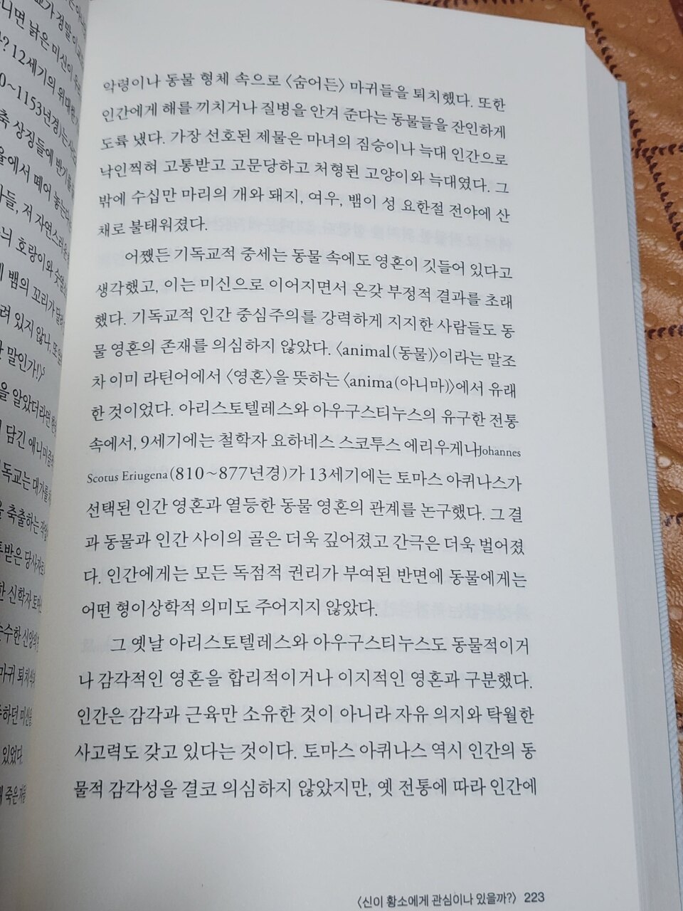 사회에서 인간과 동물의 관계를 수고할 때 우리는 항상 그 전에 무언가에 사로잡혀 있다. 판단을 내리게 하는 각자의 입장이 있다는 말이다. 옐르 들면 세계관, 종교, 문화,윤리, 가치관 같은 것들이다. (-129-)