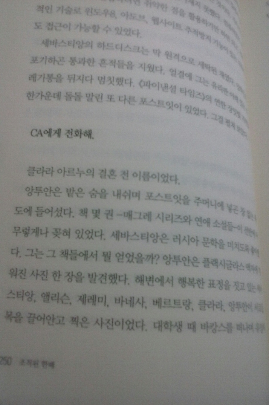 소설의 중심 이야기에 등장하는 세바스티앙,앨리슨,제레미,바네사, 베르트랑, 클라라,앙투안 ..이들은 모두 학창 시절 친밀한 대학교 동기였지만 15년뒤 서로 다른 분야에서 각자 서로 다른 삶을 살아가고 있습니다. 특히 앙투안을 제외하고 나머지는 금융과 정치 언론과 밀접한 일을 하면서 엘리트로서 부유한 삶을 살고 있지만...2008년 일어난 금융위기로 인하여 각자의 인생이 달라지게 됩니다. 특히 그리스의 회계조작를 하였던 월스트리트의 금융 조작에 대해 은폐지시가 떨어진 세바스티앙은 자살을 가장한 죽음을 맞이 하게 되었으며, 그 안에 감추어진 비밀들을 <비즈니스 데이> 기자 클라라와 어나니머스 해커 집단에 소속되어 있는 앙투안을 중심으로 비밀을 풀어나가게 됩니다.