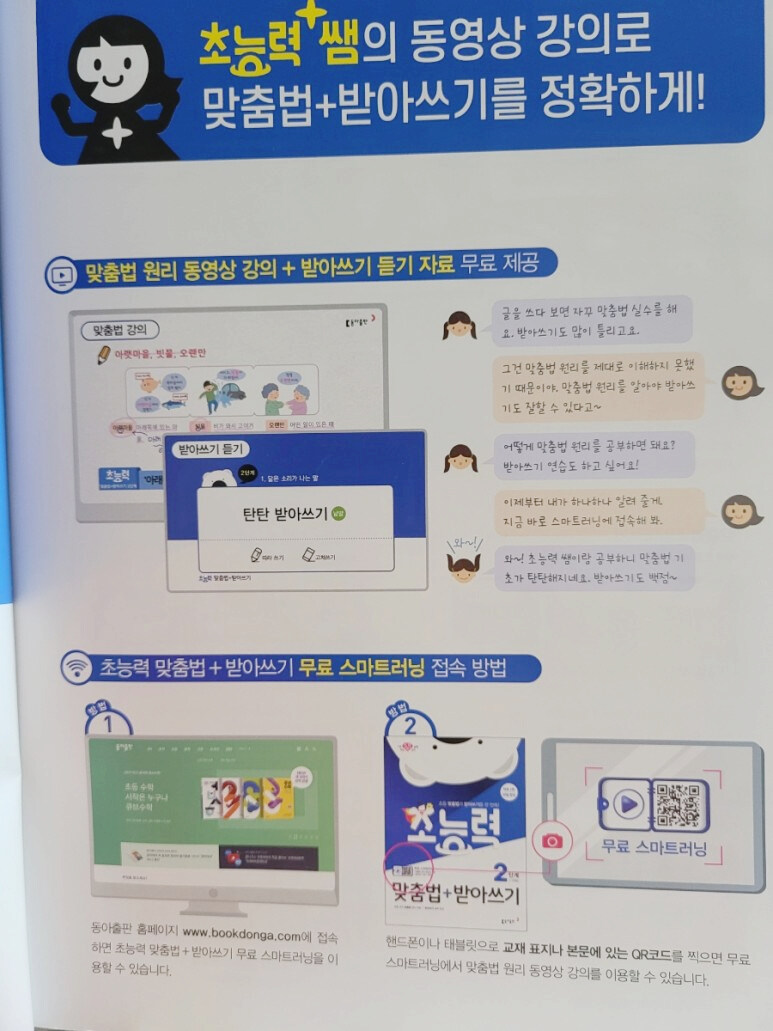 초능력 맞춤법+받아쓰기를 문제집을 선택한 이유중에 하나가 동영상 강의였어요.
