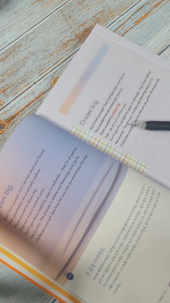 1. 성장을 위한 영어 메시지를 매일 1페이지씩 필사한다.