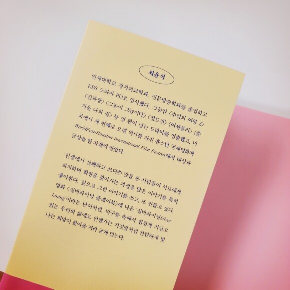 <김과장>이라는 드라마를 굉장히 재미있게 봤다. 인생의 쓰디 쓴 맛을 유쾌하고 시원하게 풀어냈다고나 할까? 그 드라마를 연출한 최윤석님의 에세이라 더 궁금해졌는지도 모른다. 인생도 드라마처럼 쓰고 계실까 하는 생각으로 책을 펼쳤다.