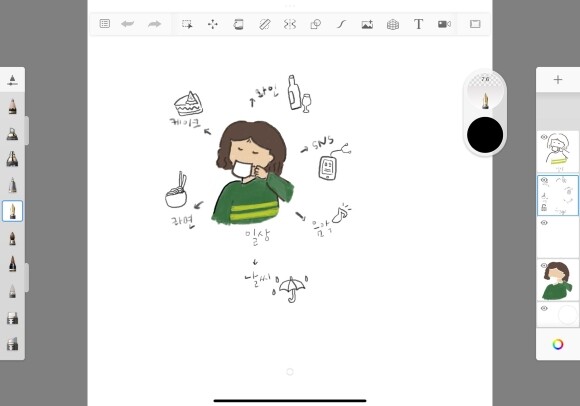 본격적으로 그리기에 앞서 쉽고 아기자기한 그림들을 그리며