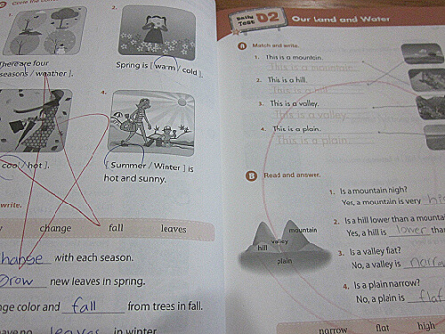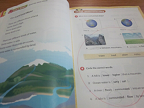 예컨대 익숙한 주제인 날씨 유닛은 쉽게 풀었지만 그 다음 땅과 물, 지리학 관련된 분야는 어려워했어요.