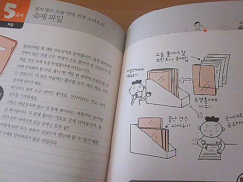 숙제를 다 한 파일은 쓰러뜨리는 방법..이거 정말 간단한 건데 효과는 짱인 방법같아요. 파일을 쓰러뜨릴 때마다 느끼는 쾌감! "오늘 안에 전부 쓰러뜨린다"라는 각오로 열심히 숙제부터 해치우면 남는 자유 시간엔 휴식을 취해도 좋고 원하는 책을 마음껏 읽을 수도 있잖아요..해피해피!!