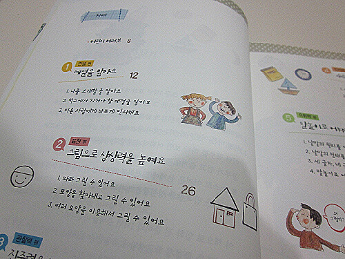 이 책도 그러한 기본 예절부터 해서 창의성을 키워주는 내용이 많아요. 또 교과 과정을 미리 재미있게 알아보는 내용이라 참 알차네요.