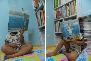 저렇게 얼굴을 가리고 큰소리로 읽고 있어요~! ㅋ