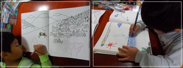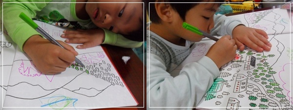 그림이 작고 많아서 울준군 색칠하다 지쳐서 건군에게 넘겨줬네요